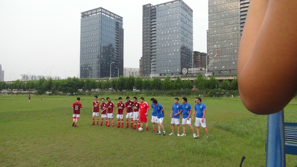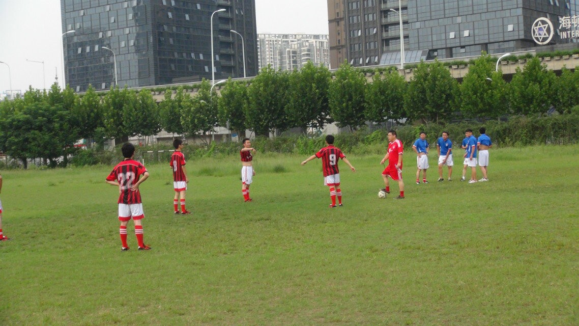 隨著紅色球衣裁判的一聲哨響,身著熱情爽利紅色球衣的設計部一馬當先,先把球拐到了腳下,馳騁的矯健身姿,奔跑如風的健康身影,都給坐席上的觀眾留下的很深刻的印象,順利的奔向藍隊球門的設計部仿佛毋庸置疑的獲得了首要的一分,但是就在這時候,身著藍色球衣的廣告部也開始了反攻,迅速組織攔截。