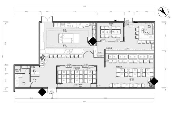 ▄原建筑結(jié)構(gòu)分析: 散座區(qū)的整體設(shè)計(jì)以木飾面和日式裝飾為主,色調(diào)溫暖,塑造了溫馨的就餐氛圍,體現(xiàn)了一個(gè)祥和安逸的生活狀態(tài),緊張的工作之后來(lái)此就餐體會(huì)到一種放松的感覺(jué)。